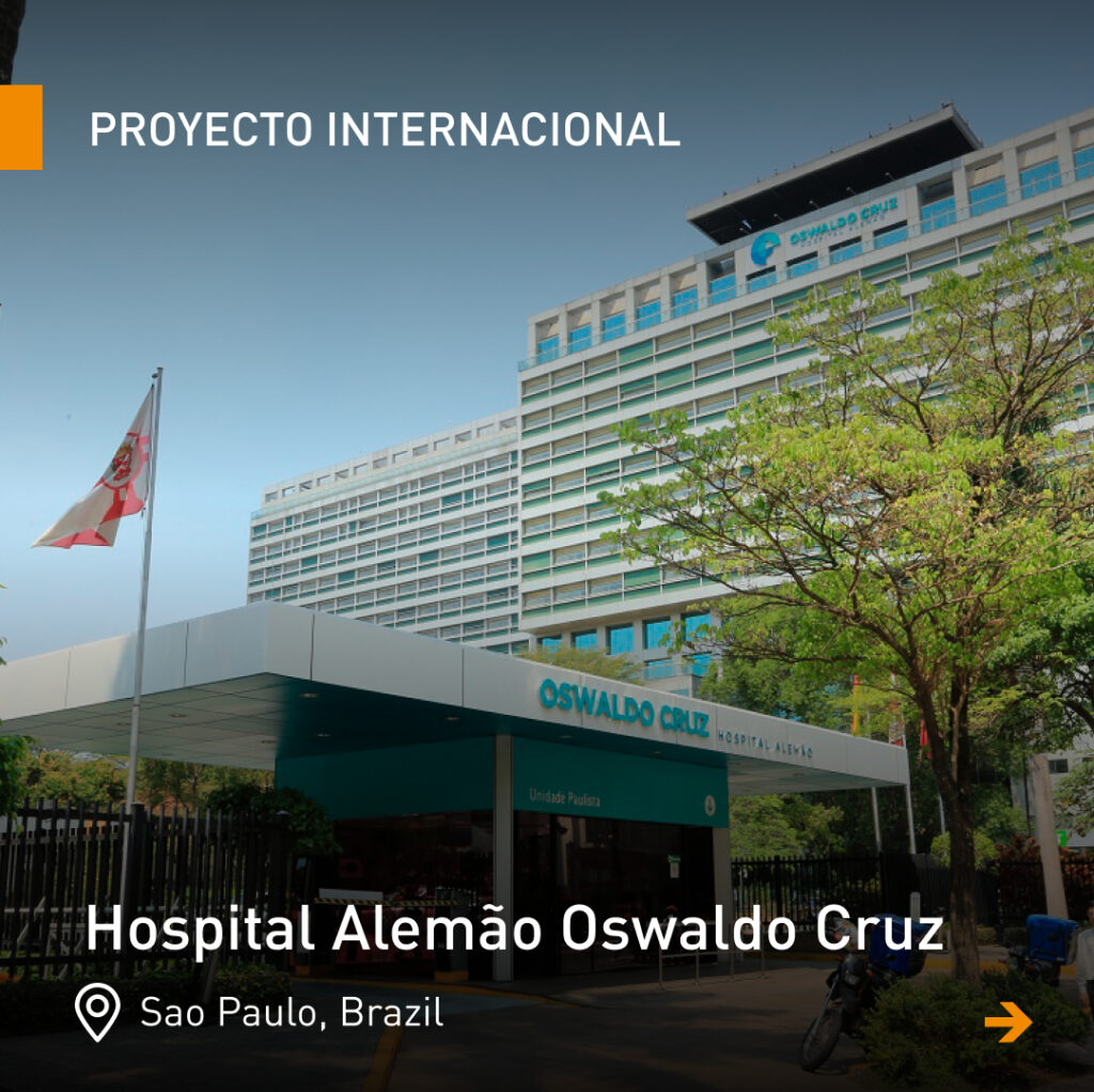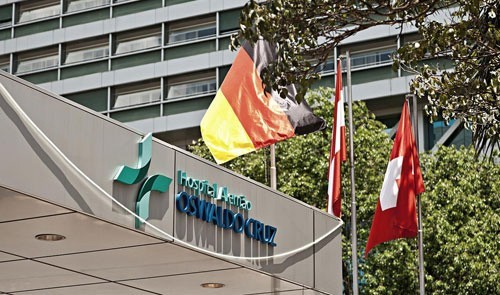 Construido de acuerdo con las pautas ambientales LEED, el Hospital Alemão Oswaldo Cruz cuenta con cinco pisos subterráneos y 19 niveles sobre el suelo. El hospital cubre un total de 29,5 millones de m2 con quirófanos, UCI y salas de hospital.